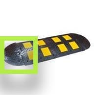 Item 360SBMS consists of one center part only of a speed bump. Speed Bumps consist of two parts. They are either center parts, or side elements. Their yellow and black colors contrast against the asphalt on the road surface, and the luminous parts stand out as a warning sign. Since they are made of rubber, the damage is minimized, when impacted.