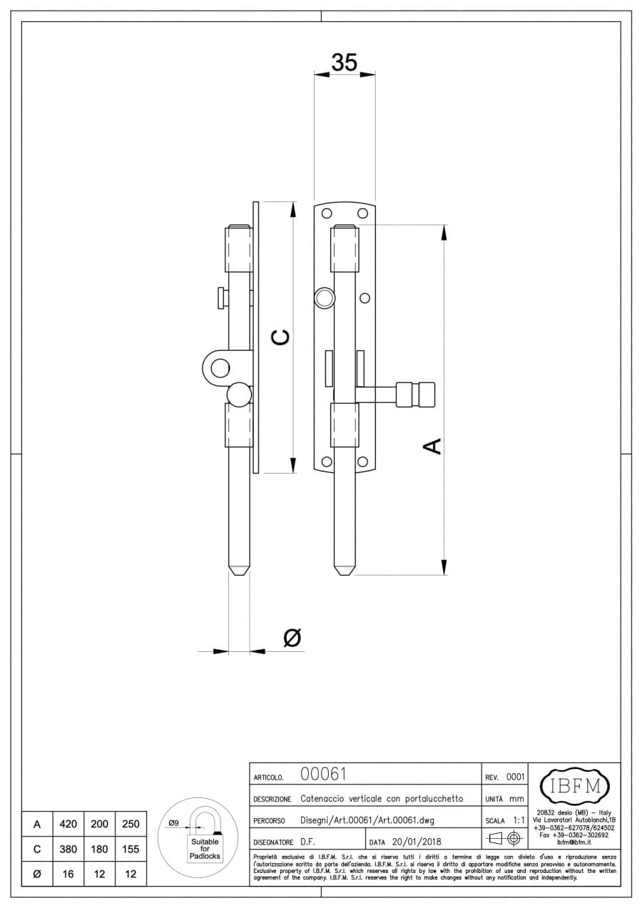 Horizontal bolt with padlocks to be screwed on wood and metal, to be used in order to lock openings.