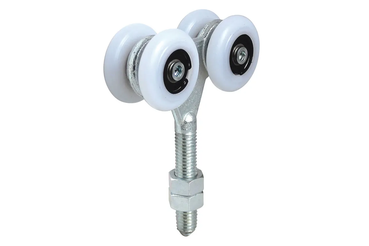 Fixed trolley for hanging gates with 4 open ball bearings.