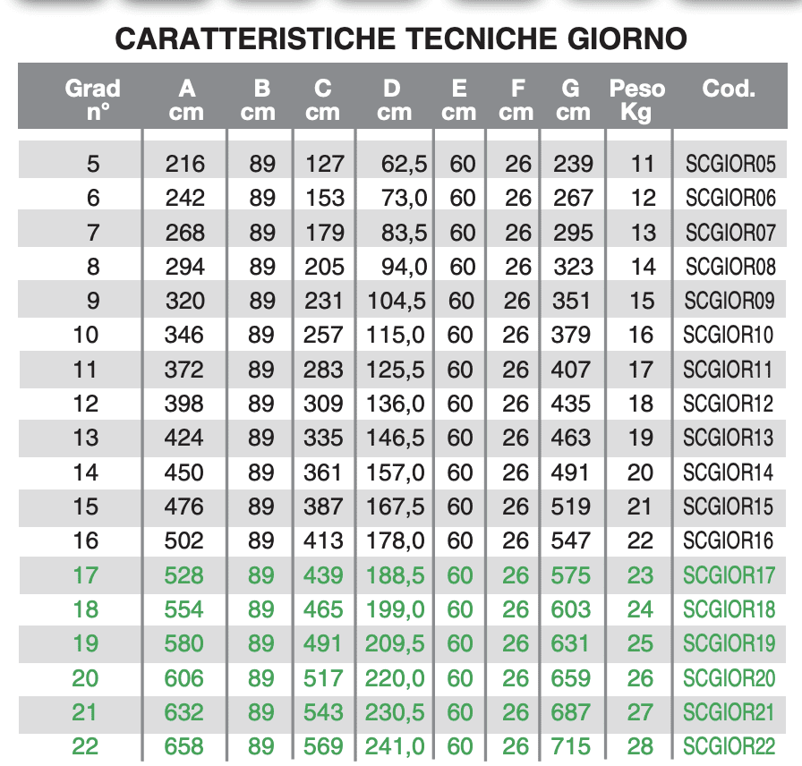 •  Last step height: m 1,27 to m 5,69 (final step height=attic height)