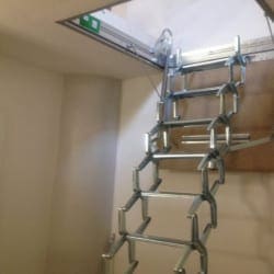 When not in use it will be placed away, out of sight, in the ceiling, behind a chipboard panel which also has a steel lock. This rather low cost set of steps is made of galvanized steel.