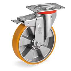 “TR” polyurethane wheels, aluminium centre, swivel top plate bracket type NL with front lock
