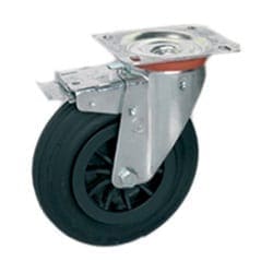 STANDARD RUBBER WHEELS, POLYPROPYLENE CENTRE, SWIVEL TOP PLATE BRACKET TYPE NL WITH FRONT LOCK