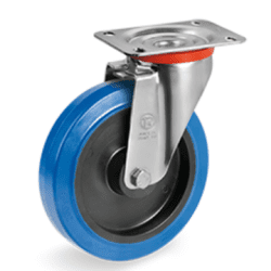 NON-MARKING BLU PLASTIC RUBBER WHEELS, POLYAMIDE 6 CENTRE, SWIVEL TOP PLATE BRACKET TYPE NL
