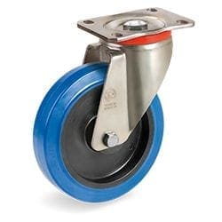 NON-MARKING BLU ELASTIC RUBBER WHEELS, POLYAMIDE 6 CENTRE, SWIVEL TOP PLATE BRACKET TYPE P